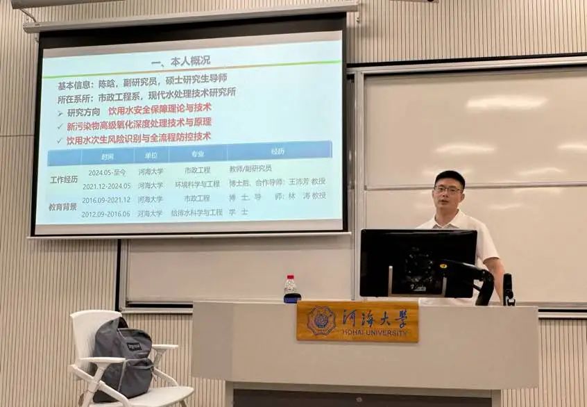 为增强学院的学术氛围,增进师生间的学术交流,拓展学生对饮用水安全保障理论与技术相关知识,第五十七期E家之谈邀请到陈晗副教授做“饮用水典型新污染物高效去除与次生风险防控”的专题讲座,为大家分享了相关技术与宝贵经验。