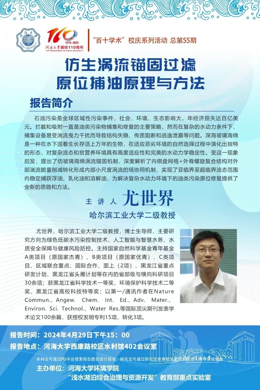 “百十学术”系列活动:仿生涡流锚固过滤原位捕油原理与方法