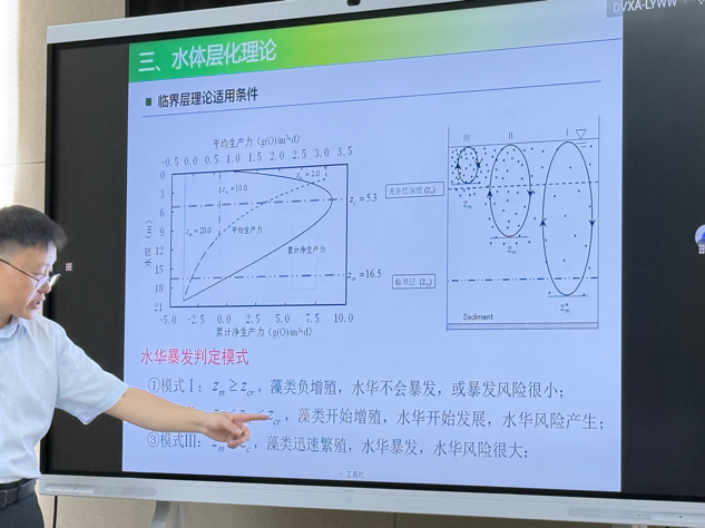 郑州大学杨正健教授为同学们系统梳理了流域生态领域的经典理论。他从生命起源说出发,揭示水与生命演化的深层关联;通过物种竞争演替理论,解析流域内生物群落的动态平衡机制;借助水体层化理论,阐释水温、溶解氧等环境因子的垂直分布规律;以稳态转换理论,说明生态系统在干扰下的状态跃迁特性。这些理论不仅构建了理解流域生态系统的完整框架,更为河湖生态修复提供了科学依据——从生物群落调控到水文环境优化,为破解水体富营养化、生物多样性下降等问题提供了切实可行的路径。