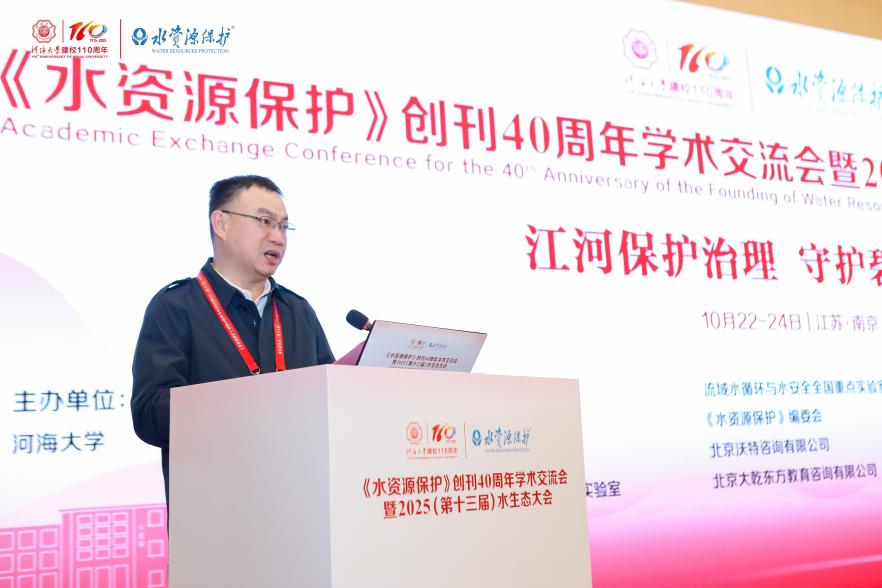 中国水利学会副理事长兼秘书长段虹在致辞中首先对《水资源保护》创刊四十周年致以热烈祝贺,并高度肯定了期刊四十年来在引领学术前沿、服务国家战略等方面取得的卓越成就。他赞誉《水资源保护》已成为我国水资源保护领域不可或缺的学术交流高地,并殷切期望期刊能以四十周年为新起点,坚持守正创新,勇攀世界一流科技期刊高峰。同时,他对在国家大力推进江河治理、生态文明和国家水网建设等重要战略背景下召开本次水生态大会的重要意义给予了充分肯定,预祝大会取得丰硕成果。