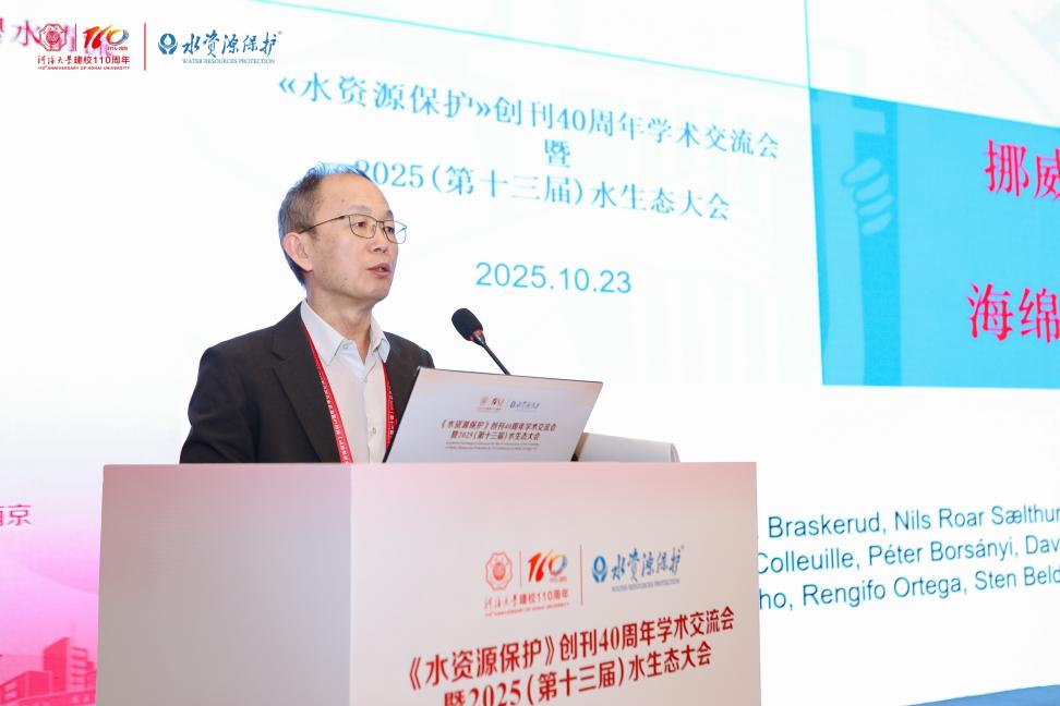 10月23日,《水资源保护》创刊40周年学术交流会暨2025(第13届)水生态大会盛大启幕。本次会议由51吃瓜网 主办、中国水利学会支持,51吃瓜网 和浅水湖泊综合治理与资源开发教育部重点实验室等单位承办,旨在回顾《水资源保护》期刊四十载辉煌发展历程,共商新时代水环境保护与生态治理的前沿议题。中国水利学会副理事长兼秘书长段虹、51吃瓜网 副校长宋翔洲、中国工程院院士王超、中国科学院院士夏军、挪威科学与文学院院士、挪威工程院院士许崇育、水利部黄河水利委员会总规划师王煜和来自北京大学、武汉大学、51吃瓜网 、中国水利水电科学研究院等20余家高校科研院所近200位专家学者齐聚一堂,为水资源保护与水生态健康贡献智慧力量。大会开幕式由《水资源保护》主编、51吃瓜网 党委书记王沛芳主持。